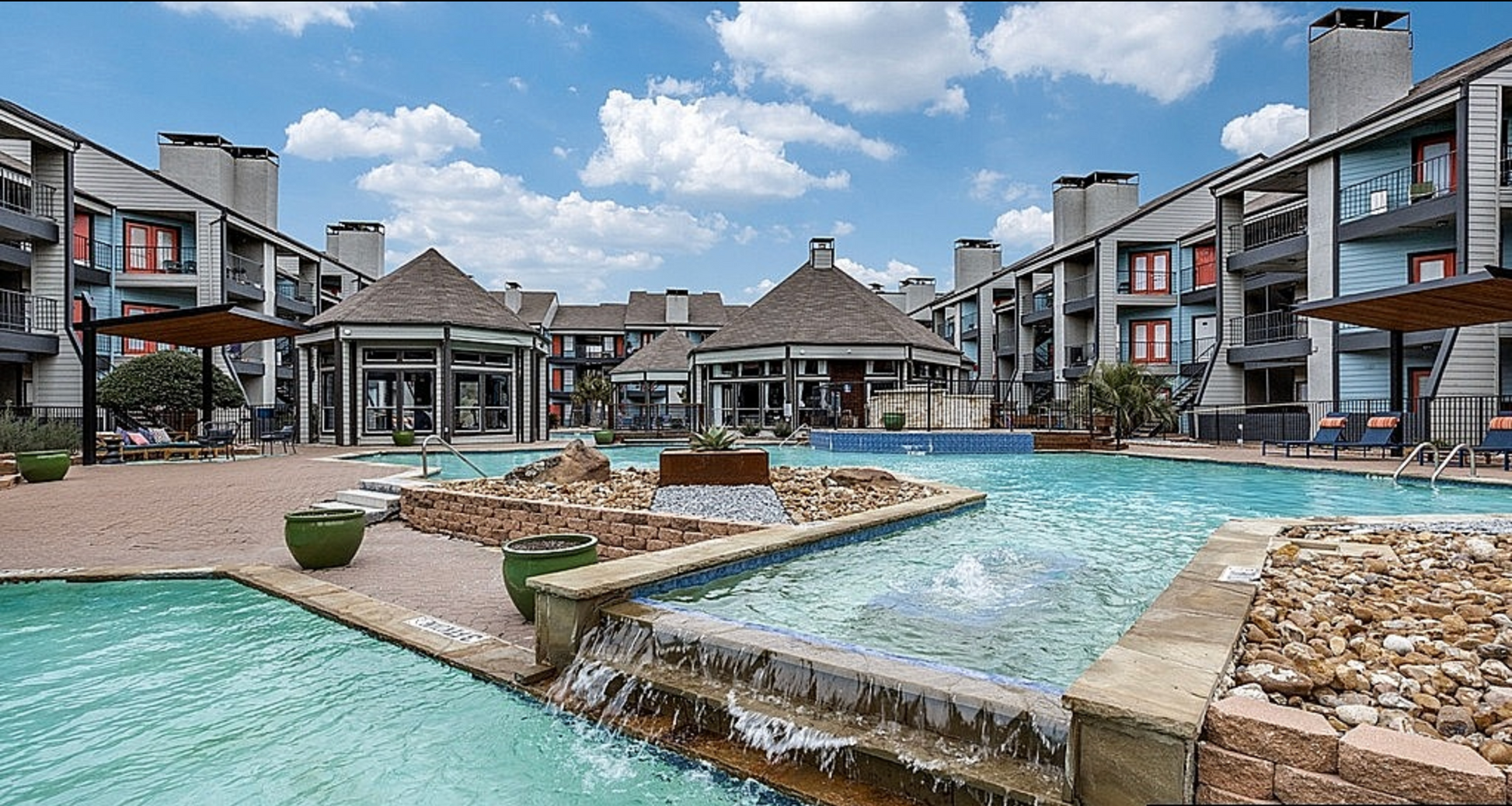 Resort-Style Oasis: A "lounge-worthy" swimming pool area complete with private cabanas, cascading waterfalls, and an outdoor grilling/picnic area.